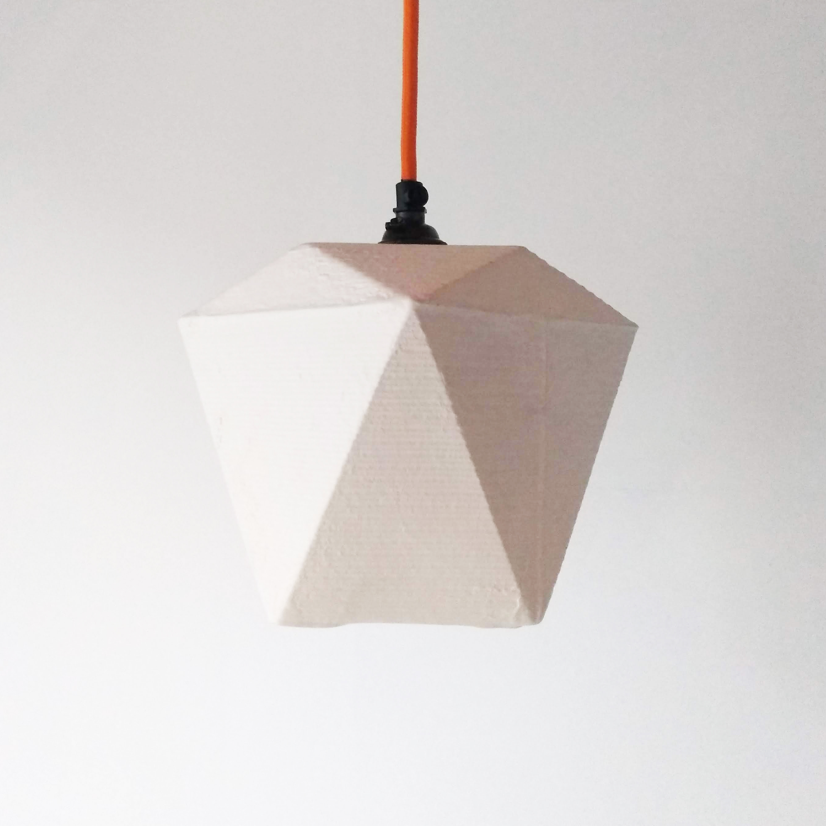 A collection of slip cast ceramic vessels as geometric planters and lighting pendants, handmade by Lydia in her East London studio. Iso Collection is named after the isosceles triangles from which the form is derived. The pieces are slip-cast from modular geometric moulds, designed and made by Lydia to create different shapes either with a wide top or narrow top.